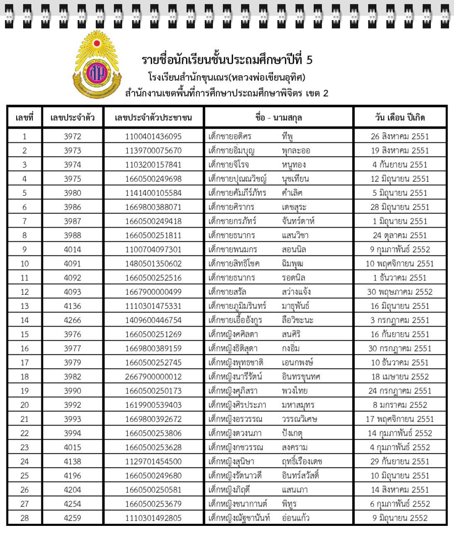 ชั้นประถมศึกษาปีที่ 5